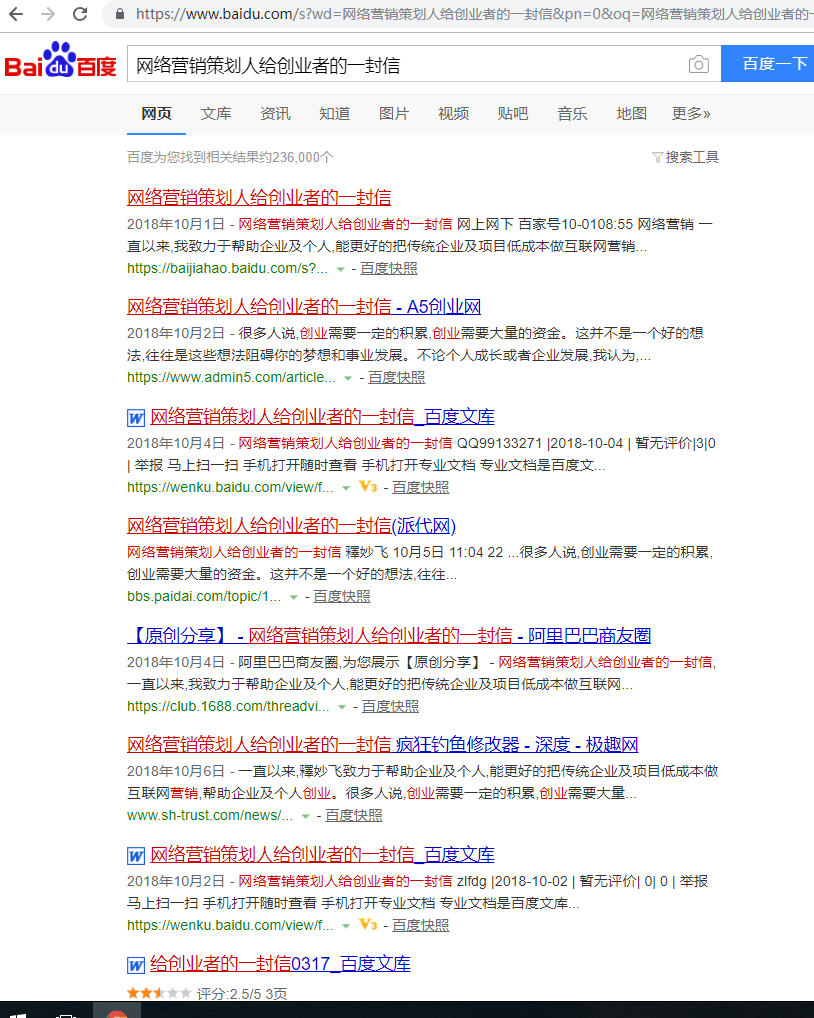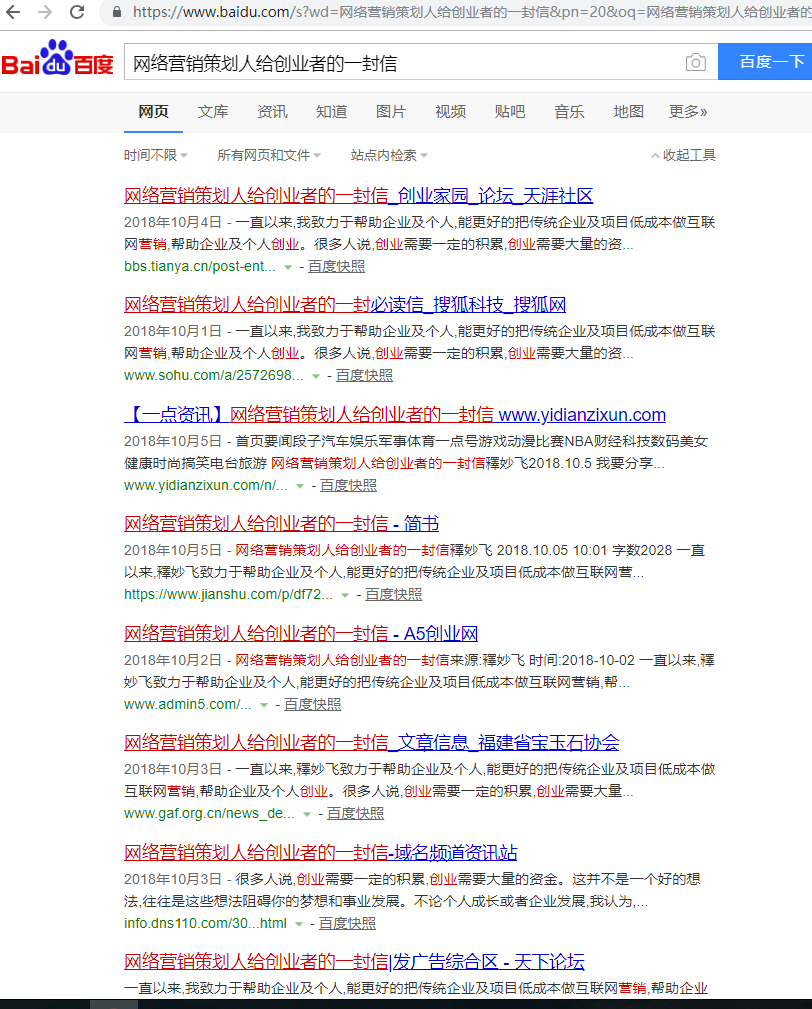 我們現在百度搜索看看網絡營銷分享轉發效果如何: