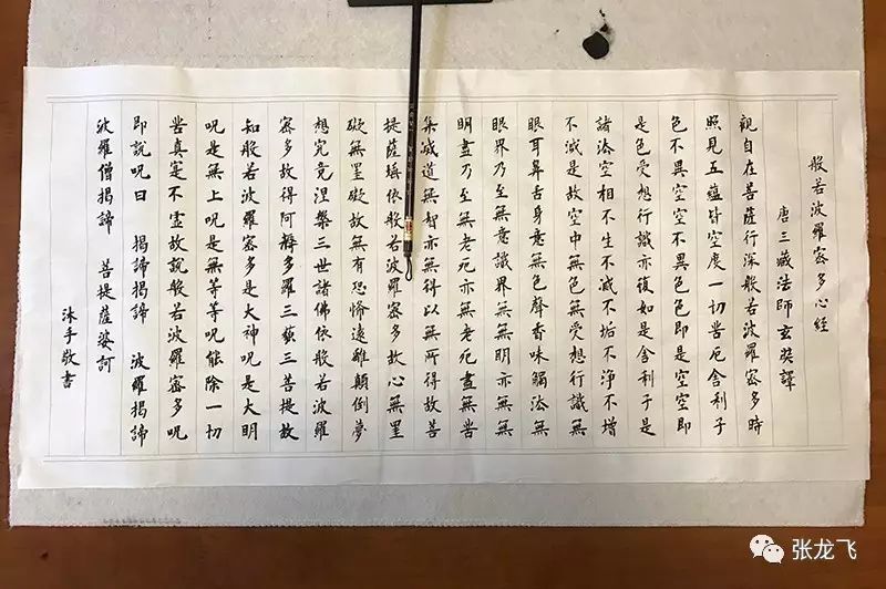 后來,我在網上買了專用的心經臨摹貼,這個帖子需要小楷毛筆書寫。我買了筆墨貼硯,總共才花了幾十塊錢。我開始了用毛筆抄寫心經。